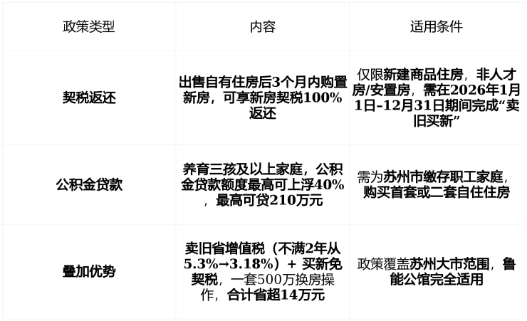 核心优势央企鲁能开发 + 上海鲁能物业直管 + 容积率仅2.0的低密板楼社区 + 步行300米直达地铁4号线蠡墅站 + 未来7号线双轨交汇 + 自带3.8万㎡“美成坊”邻里商业 + 1公里内覆盖长桥小学、长桥中学、苏苑高中 + 毗邻石湖景区+上方山森林公园 + 2026年“卖旧买新”享契税100%返还 + 三孩家庭公积金贷款最高可贷210万元苏州主城罕见“地铁+现房+低密+生态+政策”五维合一改善盘