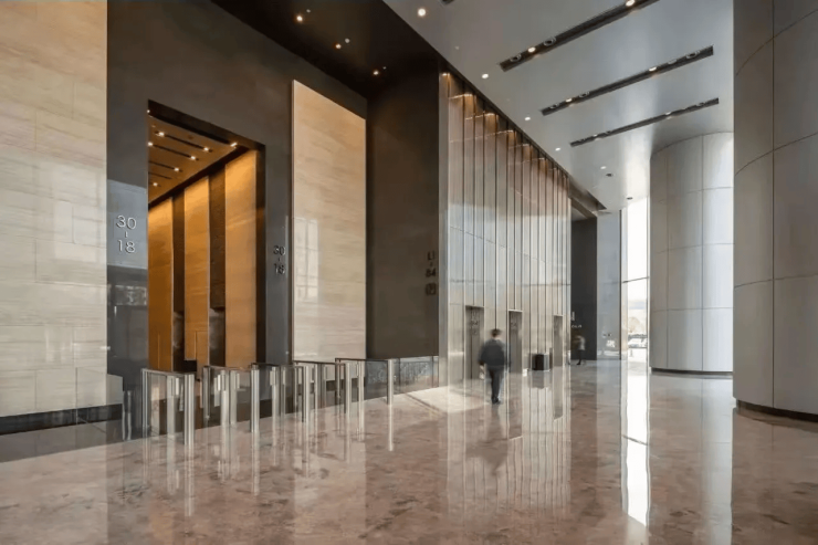 电梯系统:配备65部电梯,其中6部日立高速电梯速度达10米/秒,采用太空舱气压调节技术,提升乘坐舒适性。