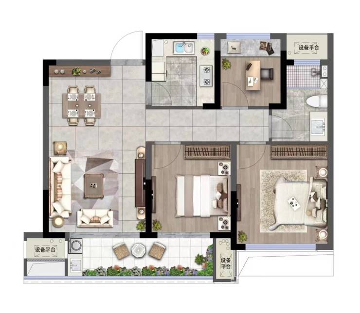 110㎡三室两厅两卫,主卧套房,空间利用率高约80%