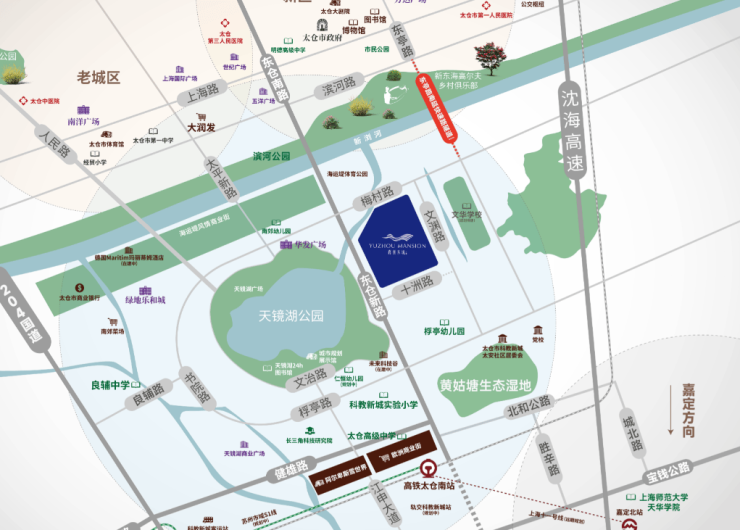 高铁通勤:直线距离太仓南站约4公里,沪苏通铁路30min直达上海虹桥站,通勤效率媲美上海市区地铁