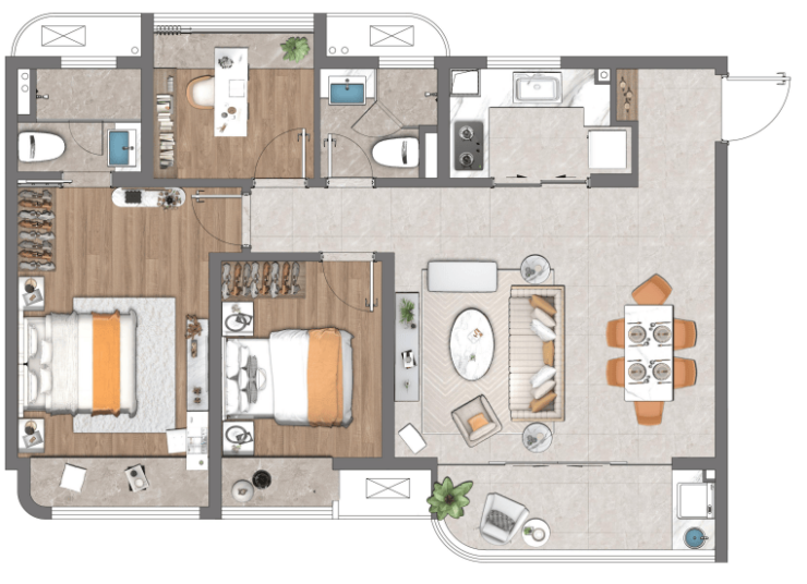 4.【舒卧】朝南双卧定制级人居体验,独立静雅书房格局,匹配高品质生活。