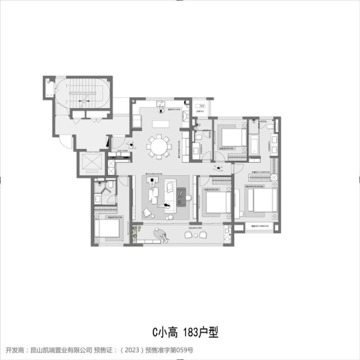 185㎡ 四室三厅三卫:约15.6米南向面宽,270°环幕观景阳台,LDK一体化空间,主卧超25㎡