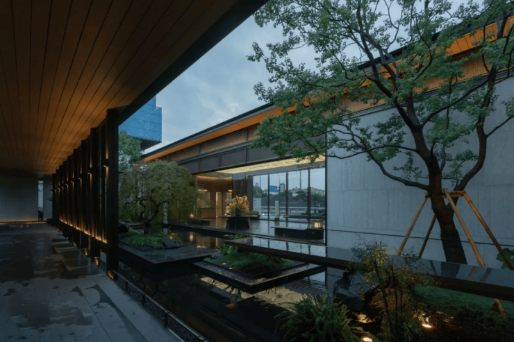 社区内部以“一园三堂”景观礼序打造“五进九雅”的东方居住体验,汲取宋代美学精髓,融合“引、礼、廊、趣、赏、院”六大元素,营造“一步一景”的园林意境 。外部则被亭林公园、森林公园、中心湖公园等环绕,形成“城芯生态圈”,出则繁华,入则宁静 。