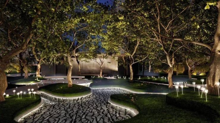 锦上和风通过“一环两轴九大空间”布局,把森林公园元素融入社区:
