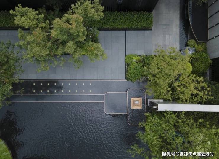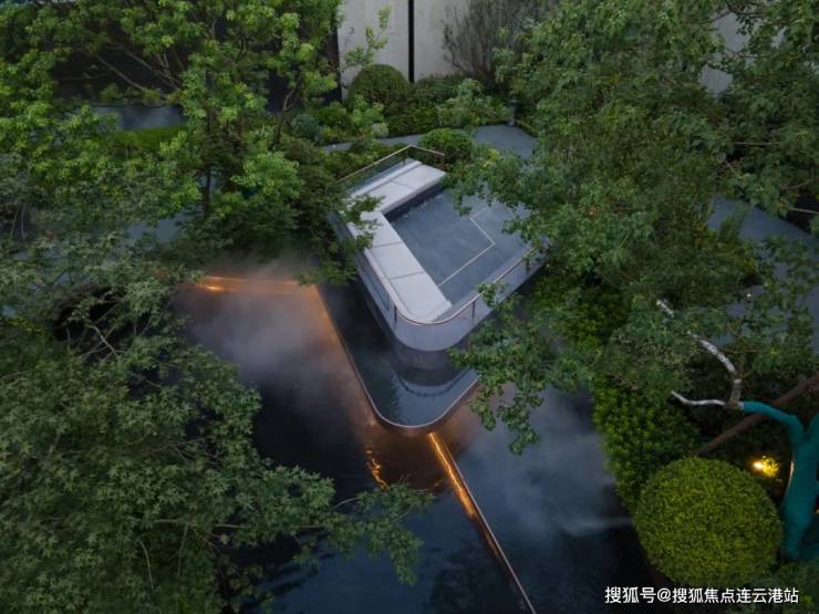 城市的喧嚣在这一隅园林中被沉淀,天色低垂,一池澄澈水面映衬着水乡的灯火通明,设计将夜幕中的灯火点缀在景池中,如江南繁华初绽,繁星摇曳。
