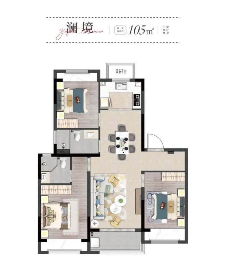 禹洲·嘉誉东境匠心打造建筑面积约105—140㎡湖居美宅,以奢阔三居/四居,满足太仓人对天镜湖畔的人居渴望。