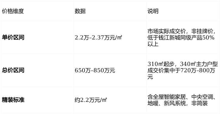 性价比:300㎡+双TOD+国际精装,总价仅为钱江新城同级产品1/3–1/2。