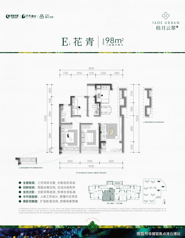 小户型选择:98-119㎡三房,满足刚需及首改需求