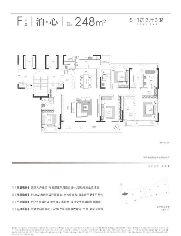 248㎡户型采用LDKG一体化巨厅(约60㎡)+全景落地窗