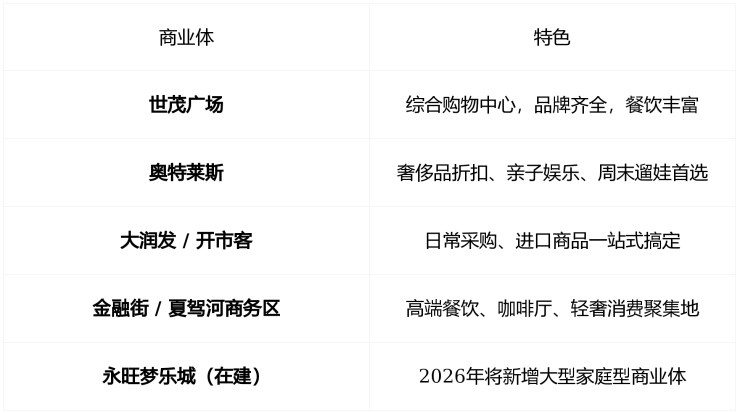 2–3公里半径内,六大商业体环绕: