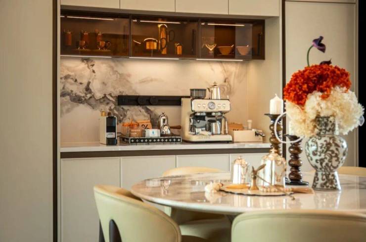 所有户型餐边柜都是交付标准,这一套如果业主后期自己装,在全屋定制里可是不小的一笔开支,而绿城全部帮你做好了——通过垂直分区与模块化设计,其收纳能力远超普通柜体,堪比一个高效的“家庭物流中心”。