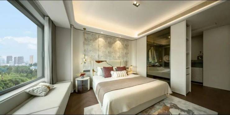 超大南向主卧套房,享受270°巨幕景观,将城市盛景与自然风光尽收眼底。步入式衣帽间,收纳功能大大提升。