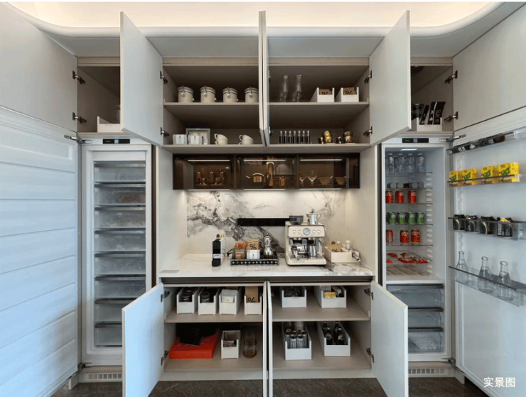 设计了更大尺度的玄关1200库、餐厅的双餐边柜,甚至西厨独立岛台,这些都是交付标准!