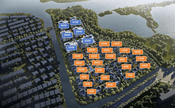 住宅建筑层数:6栋9F洋房+102户3F别墅