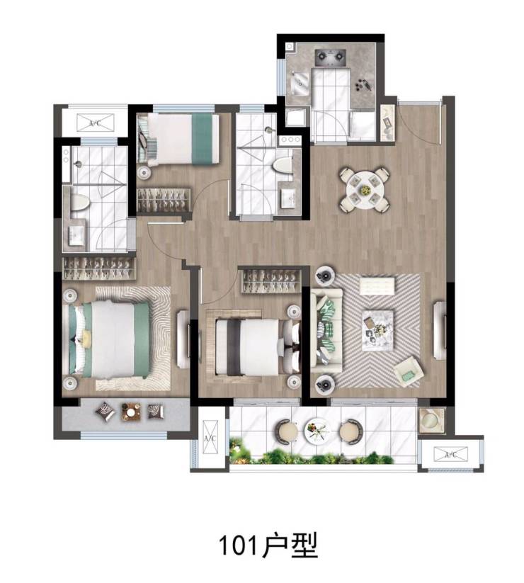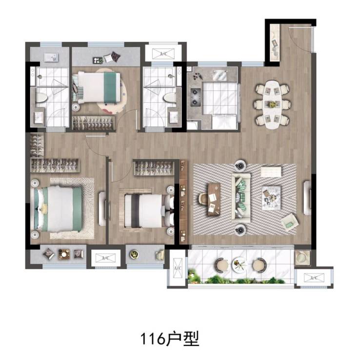 在售户型为101㎡和116㎡的三房,折后单价约1.3万-1.65万元/㎡,总价区间120万-175万元/套。其中,101㎡户型分布于多栋高层(3梯6户),116㎡为小高层边户(2梯4户),得房率75%-80%。2025年4月,101㎡户型价格从160万/套下调至132.5万/套,性价比显著提升。