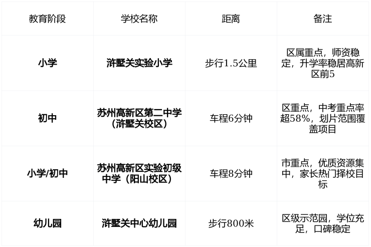项目 未明确划入公办小学学区 ,但 紧邻浒墅关实小、新区二中 ,属 高新区北区核心教育辐射圈 ,家长普遍选择“公办+优质民办”组合路径。