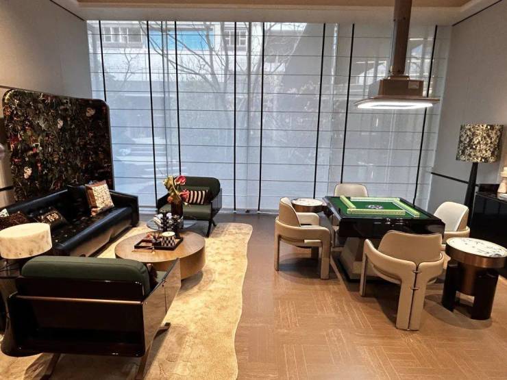 ②高雅审美提升质感:以餐客厅为例,地面通铺优雅灰色超大地砖,行云流水的纹理,演绎着永不过时的轻奢,也可搭配各类家具。