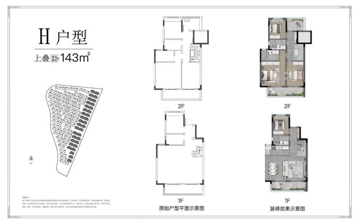 主力产品143㎡–200㎡纯叠墅社区无高层、无洋房备案均价约25,889元/㎡实际成交总价约288万–475万元/套得房率高达89%全为毛坯交付