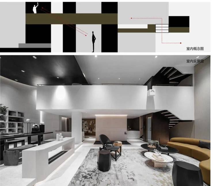 室内巧妙借鉴传统造园手法,精心营造别具中式气韵的空间场景。通过抬高、矮墙、虚隔等设计元素,搭配造景与汀步,打造出丰富多变的空间层次。同时,利用通高与楼梯,构建出竖向的“游弋”路径,让人们在空间中穿梭时,能产生如在中式园林中漫步般的美妙体验,各空间相互对望,增添互动与趣味 。
