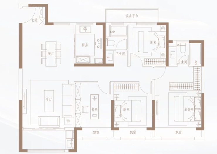 138㎡四室两厅两卫:U型厨房 + 主卧套房设计