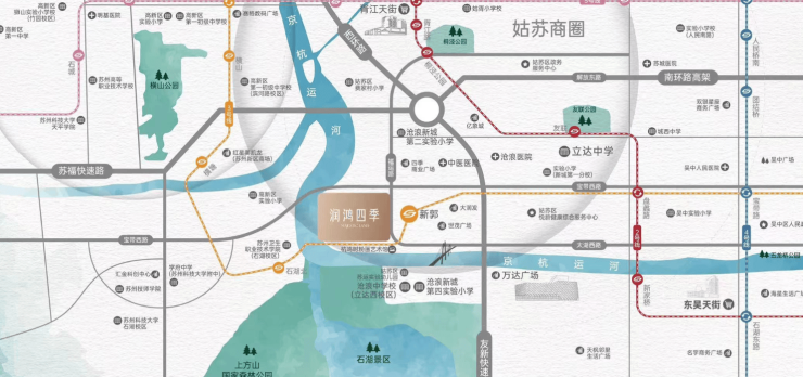 生态与休闲 :项目紧邻京杭大运河、石湖景区和上方山国家森林公园,自然景观丰富。