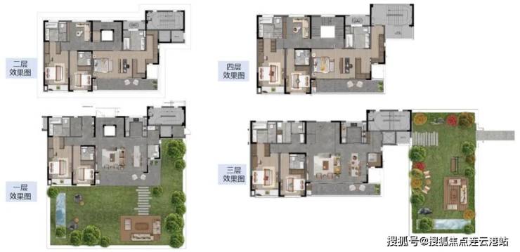 户型亮点:独立电梯入户、南北双阳台、南向庭院设计、主卧270°转角落地窗