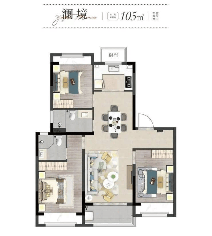 105㎡户型:3室2厅2卫设计,经济实用型,总价约153万起,分布于8#、2#、1#、5#楼栋,采用1梯2户设计,总楼层6-11层。该户型布局紧凑,功能分区明确,适合年轻家庭或首次改善型购房者。
