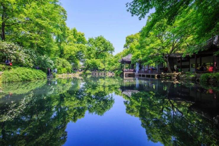 它的选址、借景堪比寄畅园。山色溪光与寄畅园均位于惠山山麓,它采用寄畅园同款借景手法,借惠山山景,借龙光塔塔景,做到了远眺“不知是在山中,还是在园中”的超凡意境。