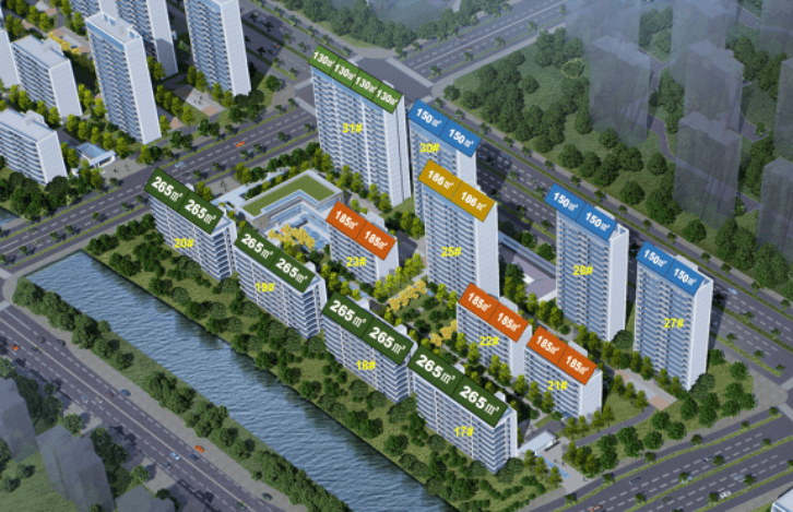 面积段:130-265㎡,覆盖刚改至高端需求,其中186㎡户型设计5套房+270°转角阳台
