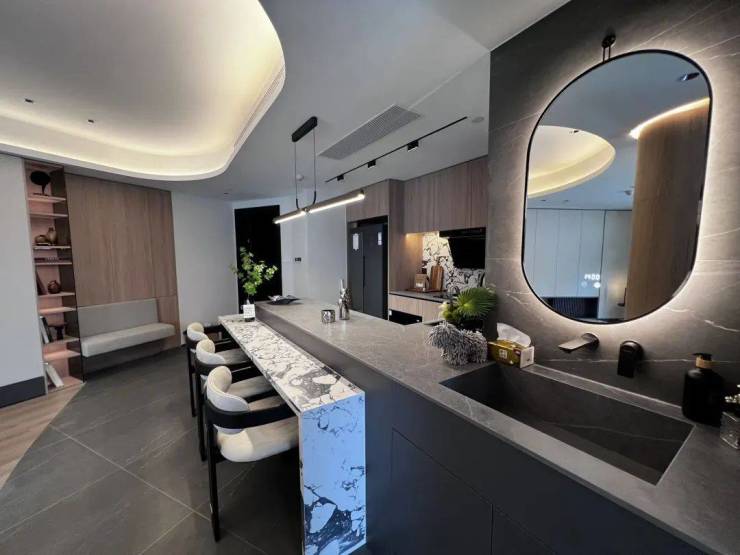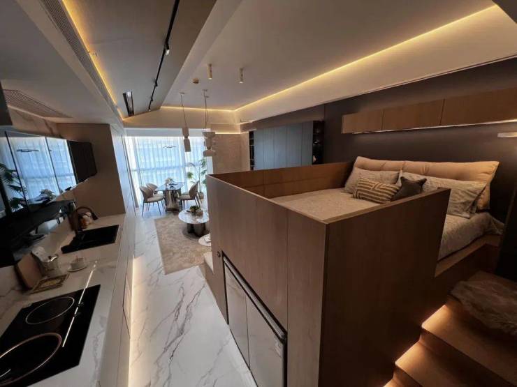 交付标准:精装全配(含自动衣架、嵌入式冰箱、洗衣机等)