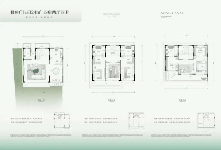 285–379㎡ 低密排屋 26,620元/㎡ 900万–1500万元 同上,含屋顶花园+独院 仅61席,主城“别墅级”资产级产品