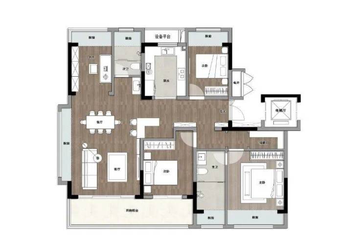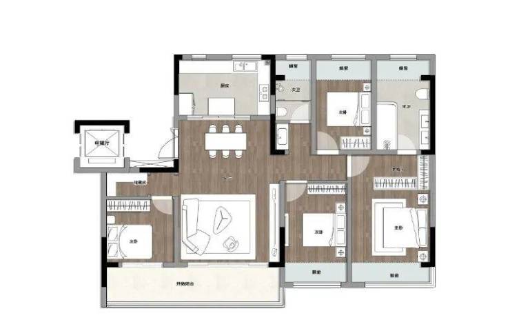 三卧四开间朝南 | 入户电梯独立空间 | 双联阔景阳台 | 超大开间厨房外接餐厅 | 主卧宽奢套房