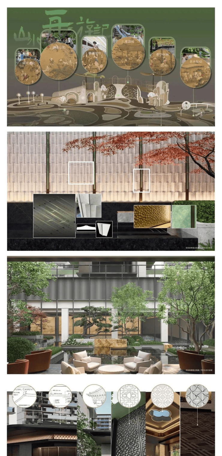 奢画:追溯明代吴门画派领军人物文徵明,以桃源问津图为蓝本,打造“桃源九境”;同时以清代宫廷画师冷枚的《百子图》为蓝本,打造儿童活动区“舟游山嬉”,寓意家族兴旺;