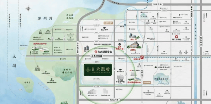 高效出行:紧邻地铁4号线主干道,辅以东太湖大道、松陵大道、S230省道等多条干道;东太湖隧道(建设中)和苏州湾隧道(规划中)将进一步提升区域连通性