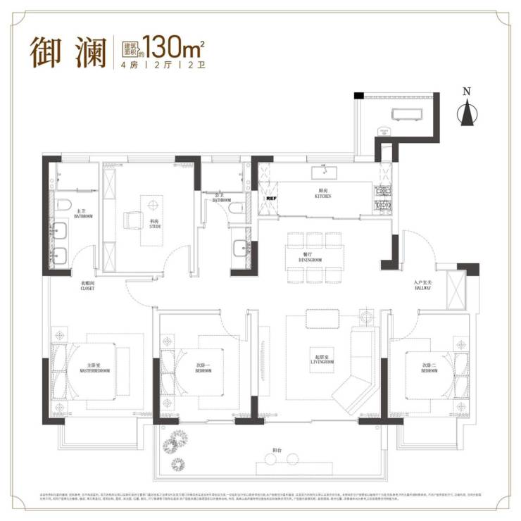 建面130㎡四居室:总价335-345万,分布于2-3号楼,1梯2户设计