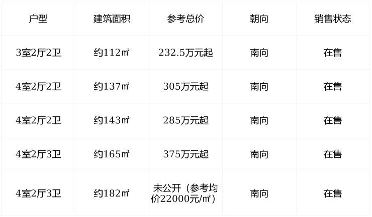 剩余房源 :目前仍有多个户型在售,未见清盘迹象,选房空间充足