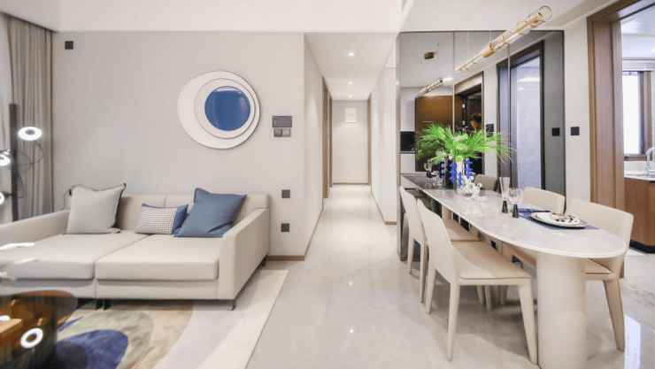 精装修交付,配备大金中央空调、博世地暖、兰舍新风系统三大件,品牌家电与智能化系统加持,实现“拎包即住”