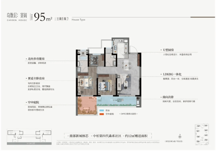 95㎡三居:南向布局,LDK一体化,适合年轻家庭或三代同堂