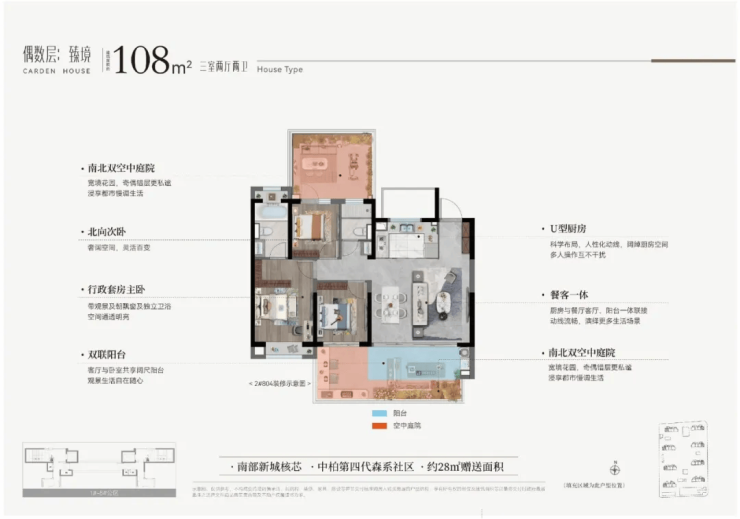 偶数层:南北双庭院 + 6米挑高 + 隐私挡板