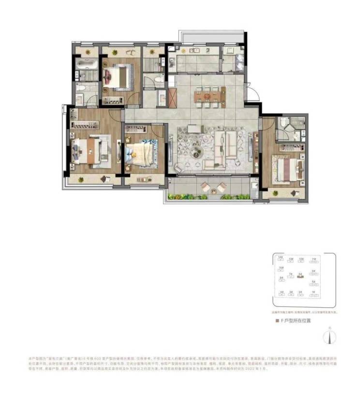 产品亮点:采用Low-E玻璃+金属铝板外立面,打造"一环两轴五境八景"园林景观,中央双园面积超1.4万㎡,配备全龄活动空间。主力户型为113-170㎡三至四房,精装交付标准含中央空调+新风系统