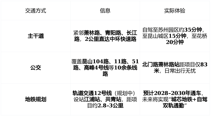 真实通勤场景 :业主多为 昆山城区、苏州园区、周市企业 白领, 当前以自驾为主,地铁开通后将成“城西通勤新动脉”