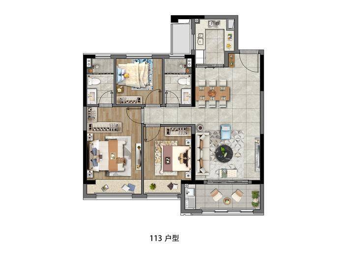 113㎡三居:毛坯交付,总价158万-175万(特惠房源低至147万),均价1.4万-1.5万元/㎡