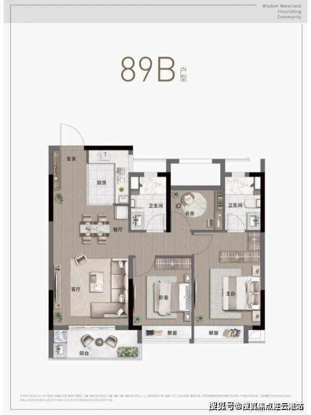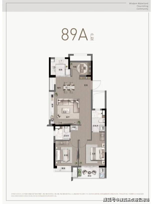 89㎡三室两厅两卫:南向三开间,套房式主卧