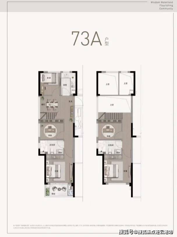 73㎡LOFT三室两厅两卫:层高约4.19米,得房率超82%