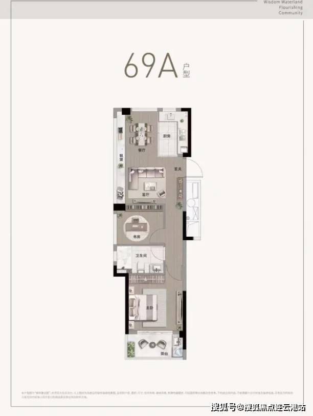 69㎡两室两厅一卫:全明设计