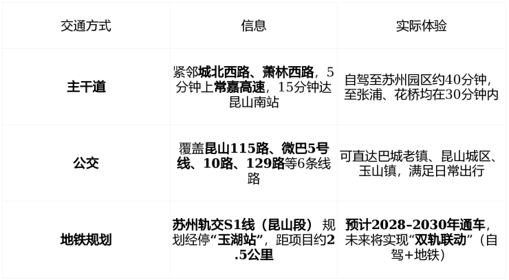 ✅ 真实通勤场景:业主多为 昆山城区、苏州园区、巴城企业白领, 当前以自驾为主,未来地铁开通后将成“城西通勤新动脉”。