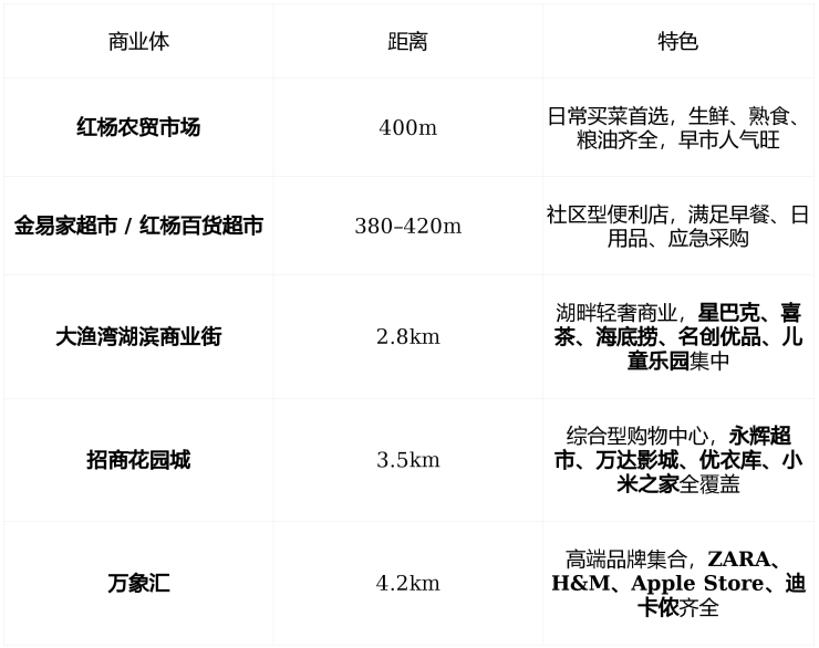 🛍️ 商业配套:社区自足+商圈环伺,烟火与品质并存
