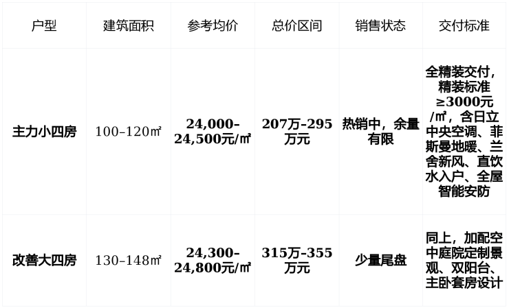 💰 在售情况:主力100–148㎡精装洋房,均价2.43万/㎡,总价207万起,热销尾盘