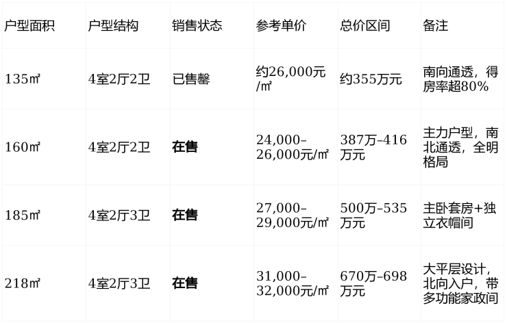 交付标准:全精装交付,标配华为鸿蒙智家系统、中央空调、新风系统