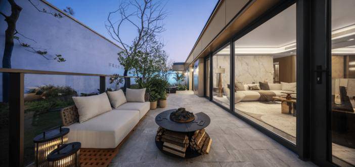 -特色建筑设计:采用弧形立面,每户赠送15-35平空中露台,部分露台超270度且挑高超6米,综合得房率达100%,空间利用最大化。